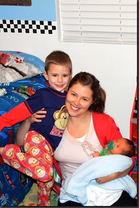 Baby finally made his appearance! We scheduled an induction for the early morning of November 1 since he was eight days late. I started contractions on my own sometime in the hour or two beforehand, but they weren’t doing much, so they put me on a low dosage of Pitocin to move things along. He was born at 12:32 PM and was 7 lbs. 11 oz.—almost a pound more than Aiden! He held out for November and picked a cool weight so we could be birthday buddies (I was born 11/11 at 11:11, so the nurses called me the 7-11 baby).