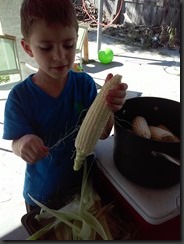 We had the missionaries over for dinner, and Aiden had fun shucking corn with me and picking lemons with Daddy to make fresh lemonade.